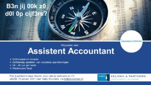 Door Felien de Ridder|2021-01-08T09:27:11+01:008 januari 2021|Reacties uitgeschakeld voor 2021.01 Assistent Accountant vacature compas