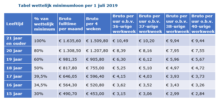 Tabel wettelijk minimumloon per 1 juli 2019 Door Felien de Ridder|2019-05-28T15:40:58+02:0028 mei 2019|0 Reacties Share This Story, Choose Your Platform! FacebookXLinkedInE-mail Over de auteur: Felien de Ridder Geef een reactieReactie Δ